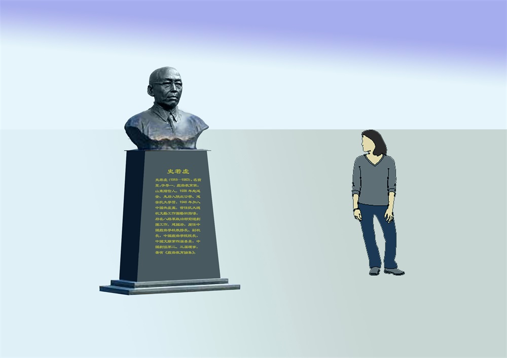 雕塑說明:該塑像由專業(yè)雕塑師塑型,玻璃鋼雕塑工藝制作。定做方提供了大量的史若虛先生生平照片供雕塑師參考,這些珍貴資料來之不易,在此表示感謝!關(guān)于史若虛先生的介紹,大家可以在百度百科查看。