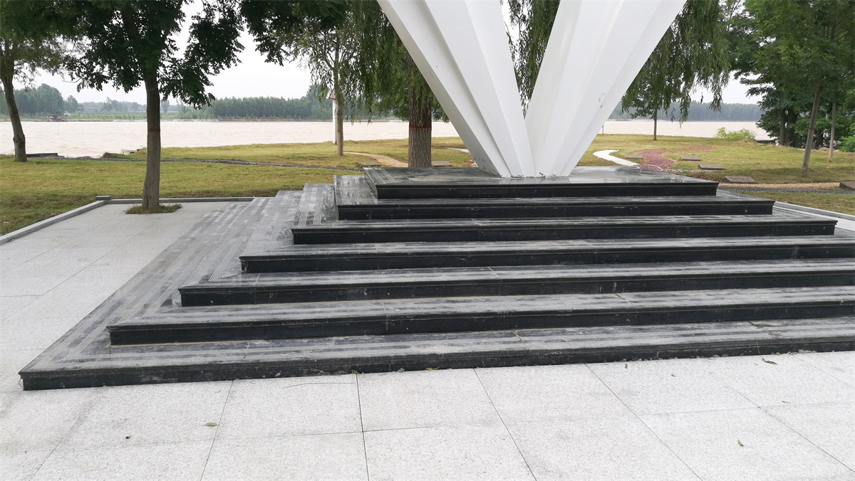 雕塑主體寬度6000毫米,含義為黃河三角洲面積約6000平方千米;七步臺階象征著七次改道;底座尺寸為寬5400毫米,寓意黃河長度5464公里;總體高度為7524毫米,寓意黃河流域面積約75.24萬平方公里。
