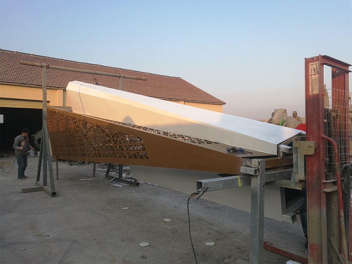 雕塑說(shuō)明:不銹鋼材質(zhì),表面噴涂氟碳漆。